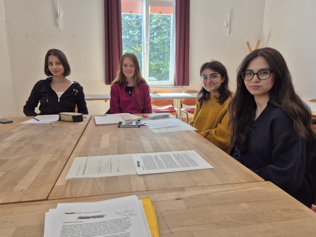 Das Grillo-Gymnasium kam selbstverständlich auch mit einem Team aus Lehrern und Schülern an diesem Mittwochmorgen ans ASGSG, um seine schlagfertigsten und redegewandtesten Schülerinnen und Schüler debattieren zu sehen: Nisa, Elyesa, Sasha und Hanaa.