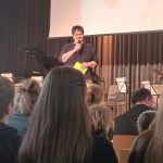 Zum sechsten Mal bereits präsentierten Jungen und Mädchen unter der Leitung und Moderation Frau Akgün in einem abendfüllenden, vielfältigen Programm eigene Texte, die bewegten, nachdenklich machten und ebenso Humor zeigten: so zum Beispiel ungekannte Streitgespräche zwischen Punkten, Kommas und anderen Satzzeichen, aber auch Geschichten über das Leben selbst und Träume, die zwar nicht wahr, doch dann im Traum zu Wirklichkeiten wurden. Ein poetisches „Pottpürree“ von skurrilen Allegorien bis hin zu tiefen Einsichten in Lebens- und Gefühlswelten. Für eine ausgezeichnete musikalische Begleitung des Abends sorgte — kurzweilig, elegant und geschickt zwischen den Lesungen platziert — die Grillo-Band „Little Kings“ mit ausgewählten, modernen Jazz-Arrangements unter dem Bandleader Ulrich Schumacher. Zudem wurde das neue, vielversprechende Grillo-Projekt „German Dream“ von Herrn Schaf der Schulgemeinschaft präsentiert.