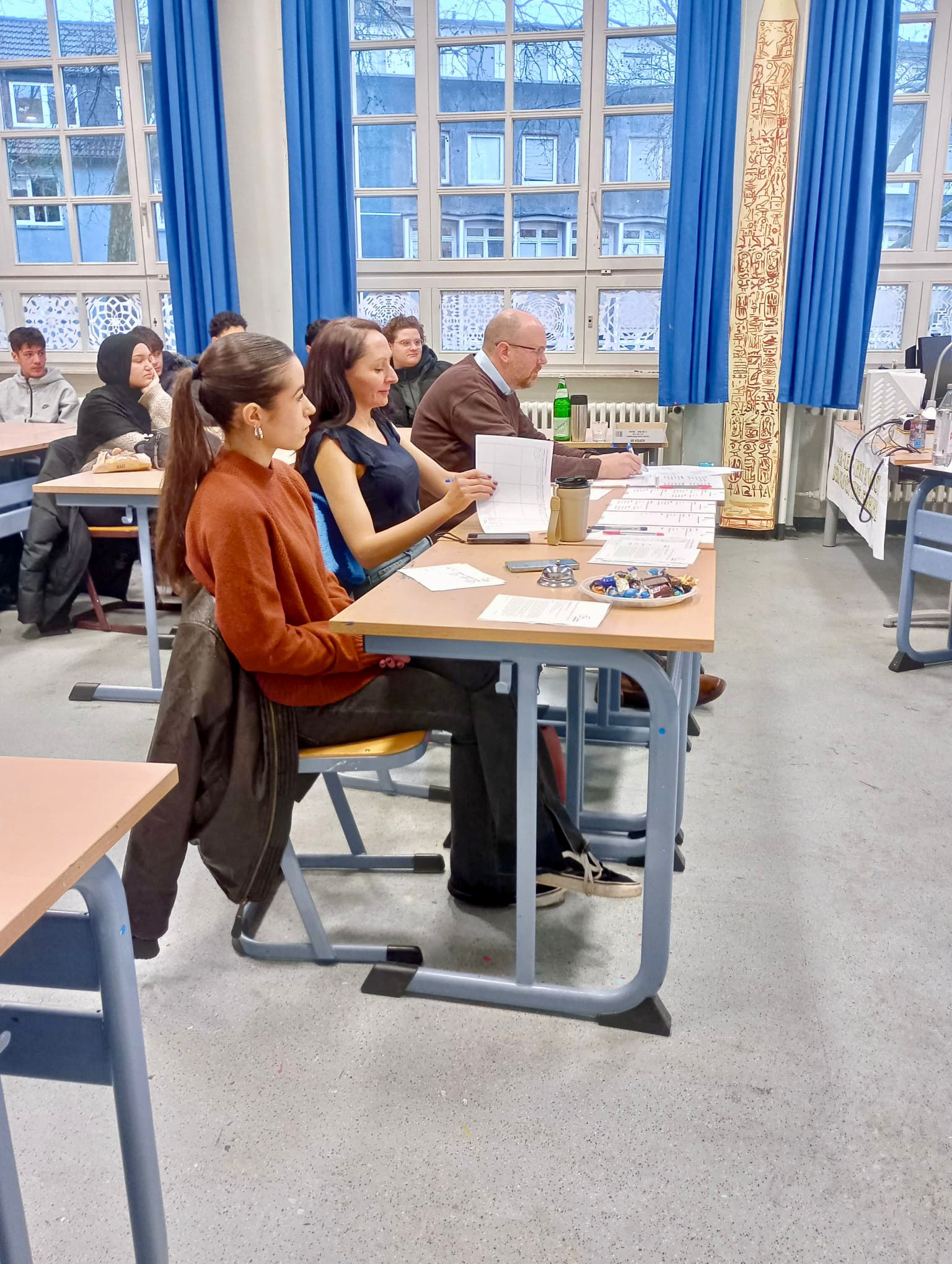 Für das Publikum war der Wettbewerb äußerst informativ und bereichernd. Die unterschiedlichen Perspektiven auf komplexe Themen regten zum Nachdenken an und zeigten, wie vielfältig Lösungsansätze sein können. Ein herzlicher Dank gilt allen Schülerinnen und Schülern, die mit großem Einsatz an den Debatten teilgenommen haben, unseren beiden Zeitwächtern Lotta und Amir sowie der wunderbaren Jury, bestehend aus Frau Runkel, Frau Schulenberg und Herrn Griese, und den Organisatoren Frau Akgün, Frau Gläsner und Herrn Öztan, die diesen gelungenen Tag möglich gemacht haben. Danke für die spannenden Beiträge, die faire Atmosphäre und das großartige Engagement! Wir freuen uns schon jetzt auf den nächsten Wettbewerb und darauf, wieder so inspirierende Debatten erleben zu dürfen.