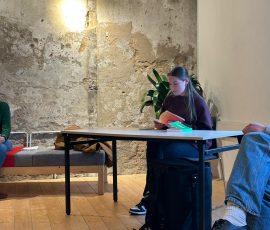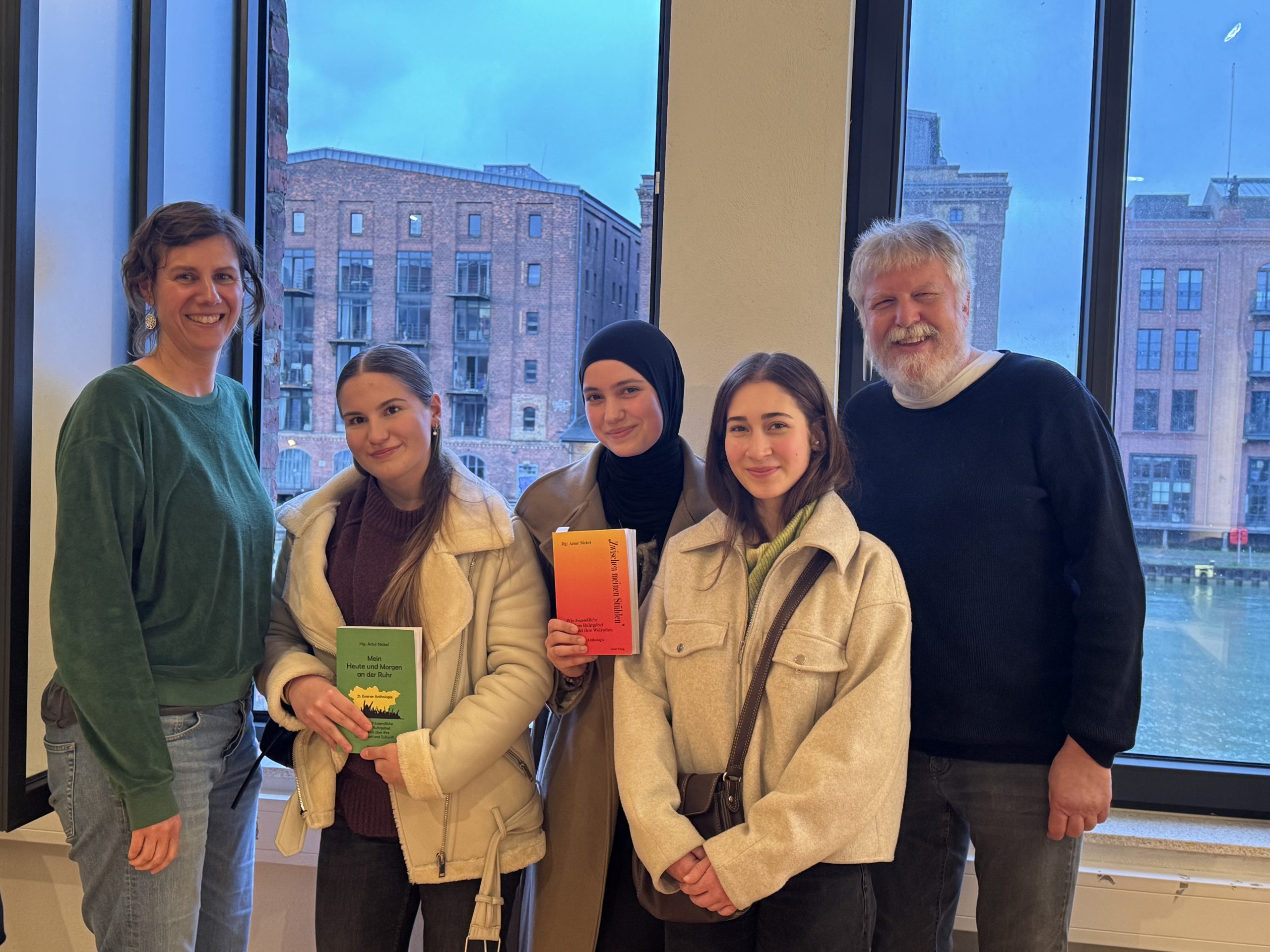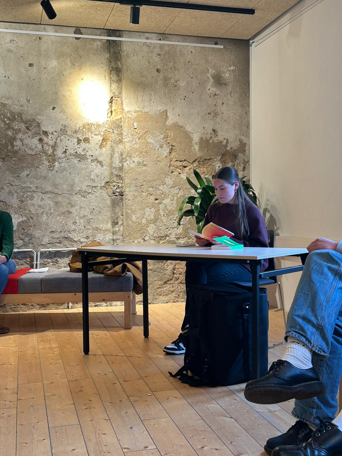 Wie bist du zum Schreiben gekommen? Wie gehst du vor, wenn du schreibst? Was bedeutet dir das Schreiben? Das waren einige der Fragen, die die Zuhörenden den Jugendlichen stellten. Der Raum im B-Side in Münster am 14. März 2026 war voll besetzt. Sogar weitere Stühle mussten noch gestellt werden, so groß war der Andrang. Die Gemeinnützige Gesellschaft zur Unterstützung Asylsuchender e. V. hatte geladen. Sie wollte die Essener Anthologien vorstellen und Jugendliche zu Wort kommen lassen, die dort ihre literarischen Texte veröffentlicht haben. Sie sollten Einblick geben in ihr Erleben von Sich-zu-Hause-fühlen, Ankommen und Angekommen sein, Diskriminierung und Rassismus, Flucht, Verständnis und Verständigung.