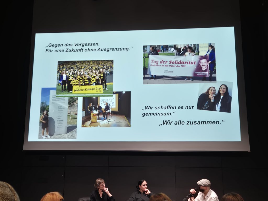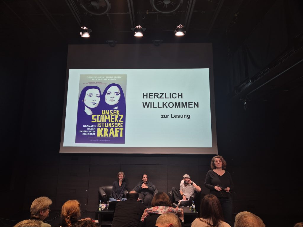 Im Mittelpunkt des Abends stand Gamze Kubaşık, die Tochter von Mehmet Kubaşık, der 2006 vom sogenannten NSU ermordet wurde. Schon nach wenigen Minuten erfüllte ihre Stimme den Raum mit einer Mischung aus Schmerz, Klarheit und mutiger Offenheit. Sie erzählte von den Jahren nach dem Mord an ihrem Vater – Jahre, die eigentlich von Trauer geprägt hätten sein sollen, stattdessen aber von Misstrauen, Anschuldigungen und ständigen Polizeibefragungen bestimmt waren.